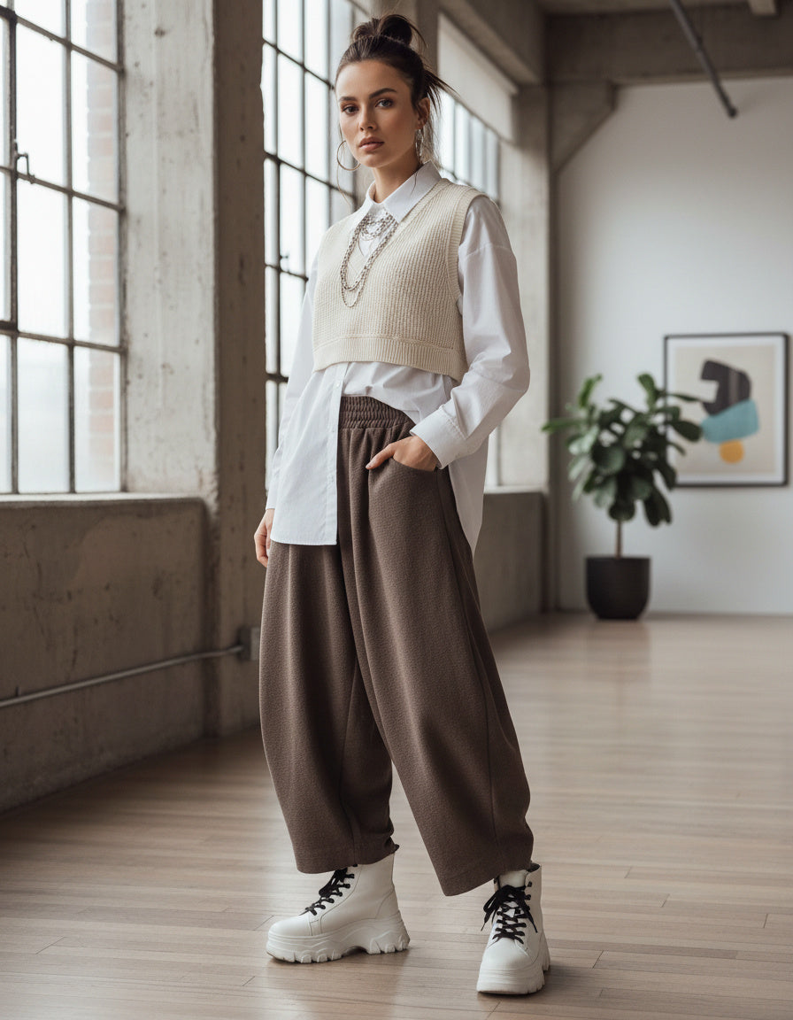 Women’s Autumn Casual Harem Pants – Cotton High Waisted Trousers, Retro Loose Bloomers, Oversize Baggy Sweatpants