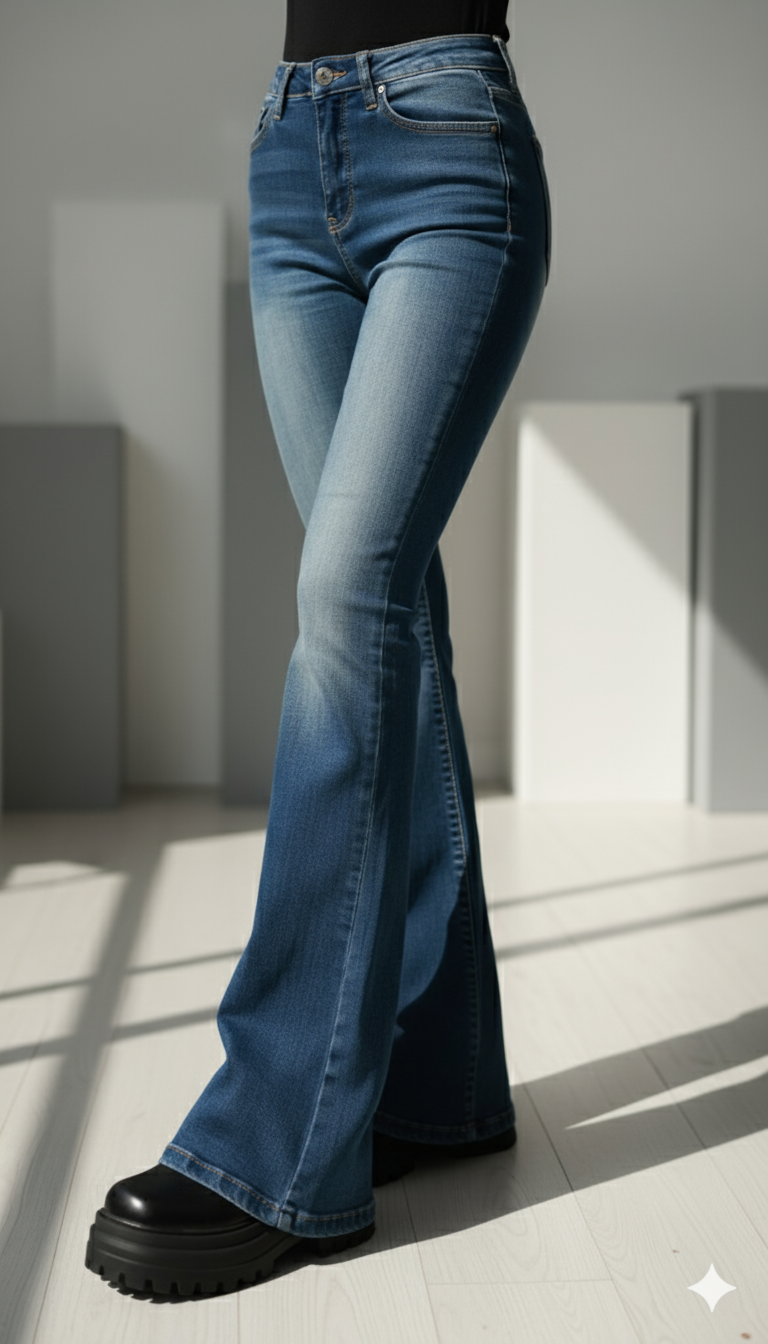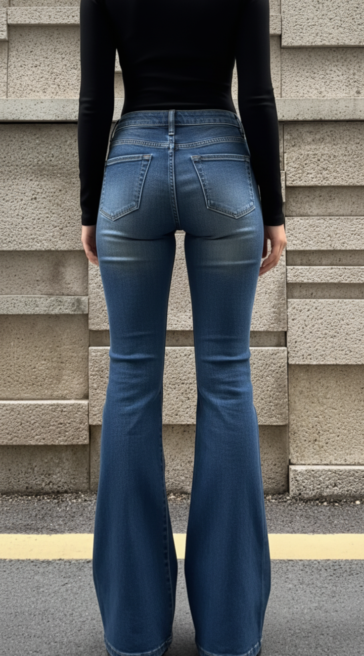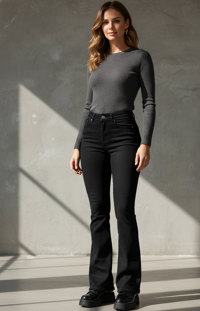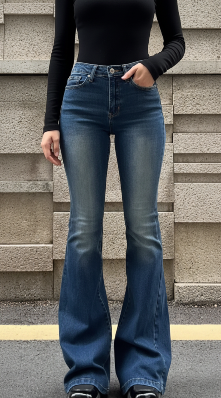 Women’s High Waist Flared Jeans – Stretchy Bootcut Denim, Solid Color Thin Bell Bottom Pants