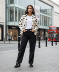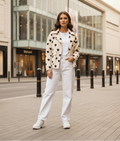 The subtle polka-dot texture adds a trendy twist, making it the perfect fall and winter jacket for daily wear or city outings.