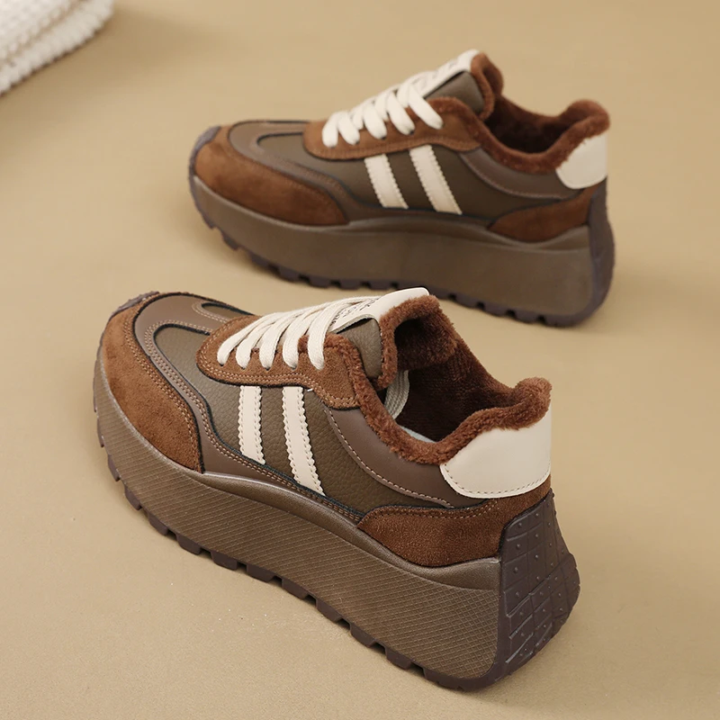 Chunky platform sneakers crafted for everyday comfort and modern style. Featuring a durable rubber sole, breathable mesh lining, and an easy-care PU upper, these lace-up trainers deliver reliable support with a true-to-size fit. Perfect for winter wear and casual looks.