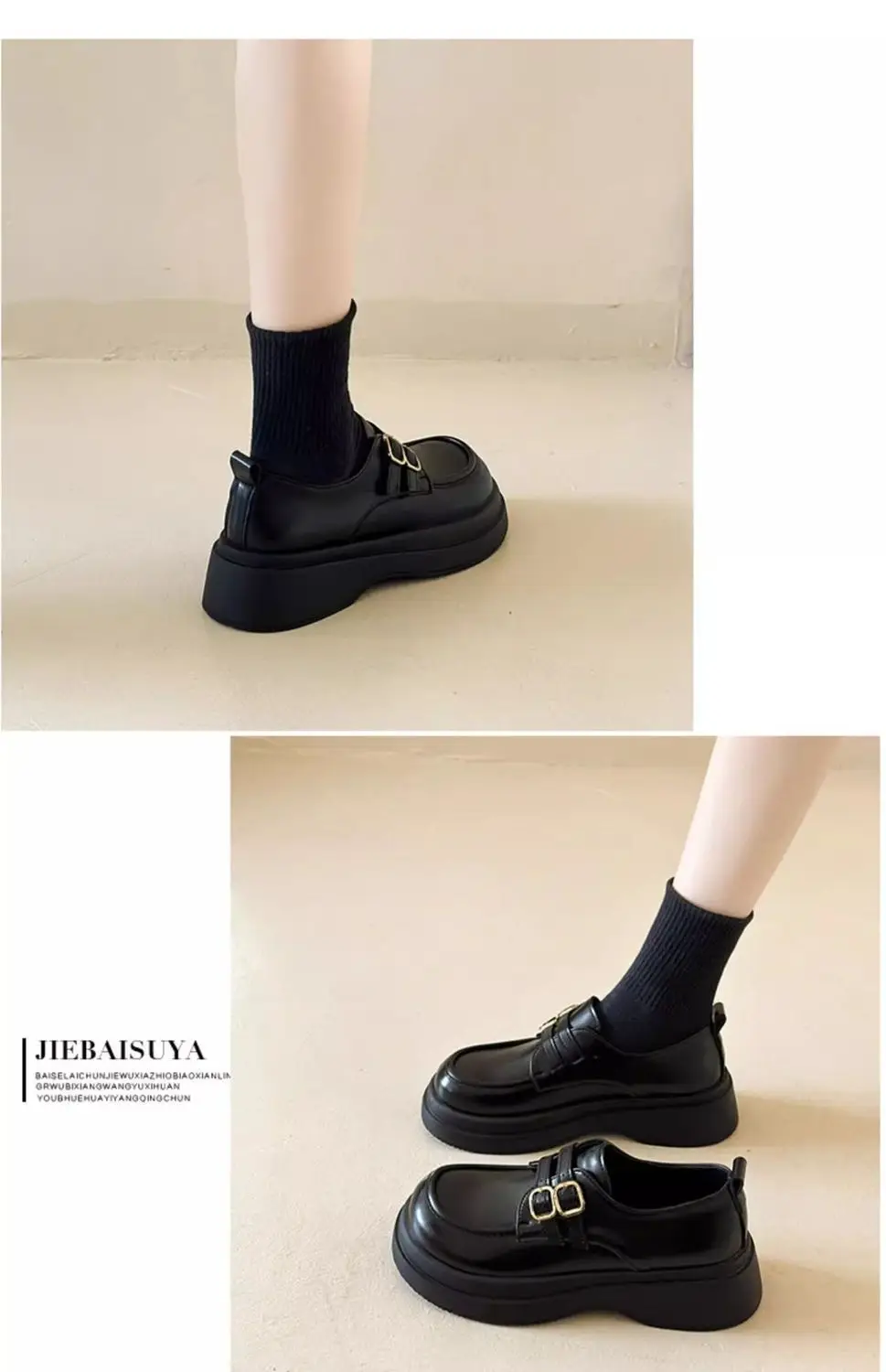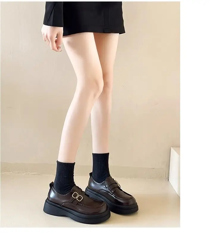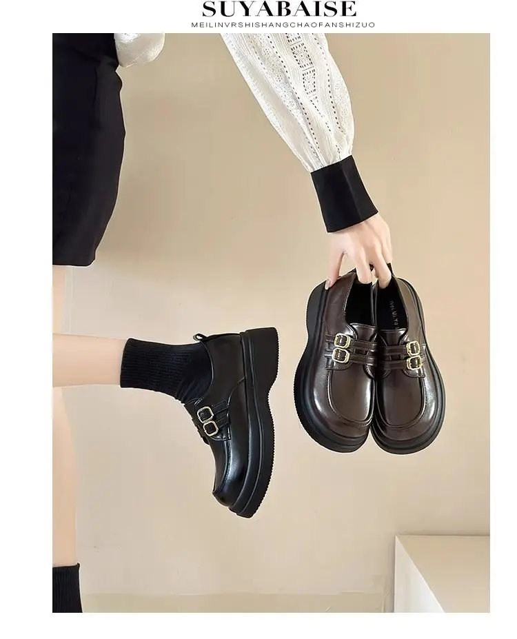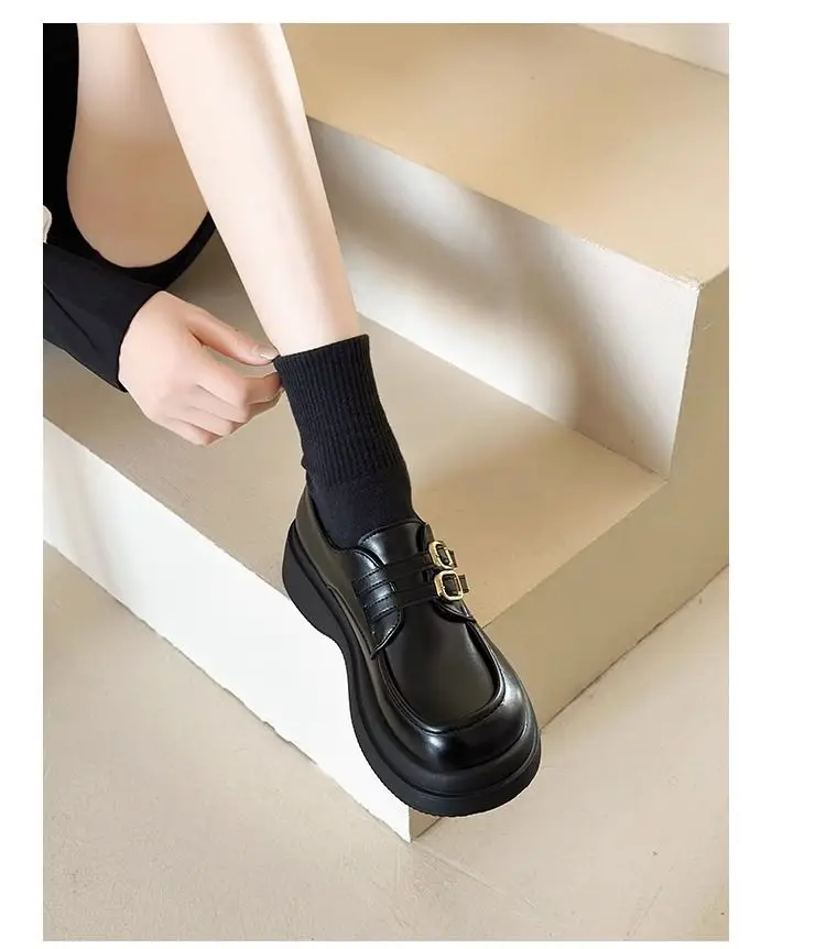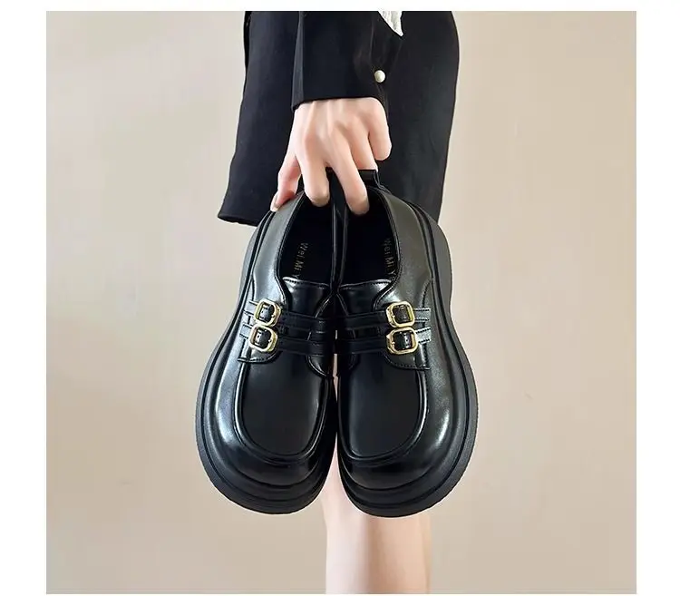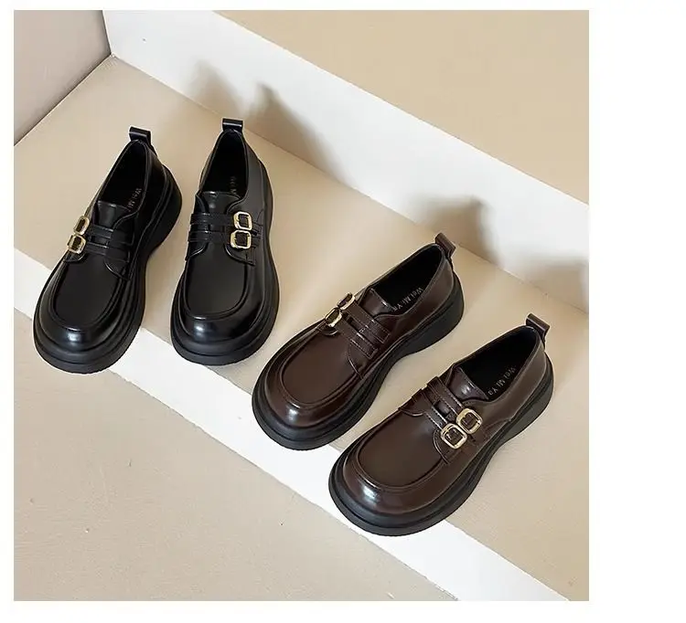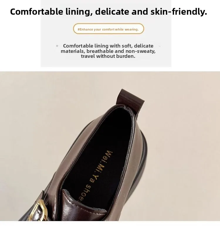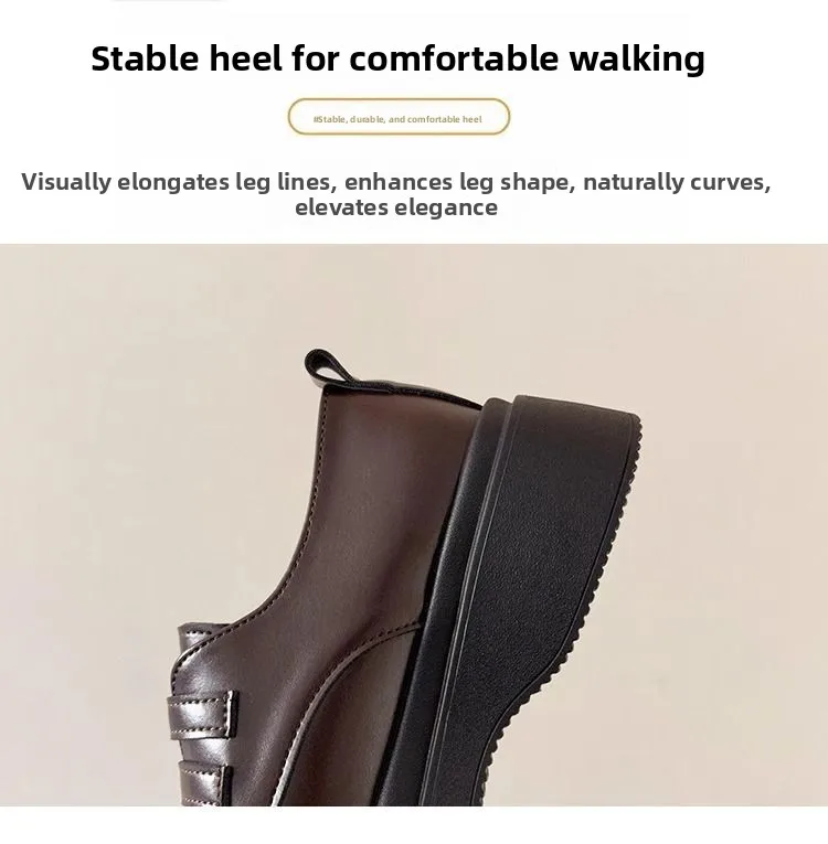 Classic Mary Jane platform shoes with a slip-on closure and thick heel for effortless style. The sturdy rubber sole delivers reliable grip and durability, while the closed-toe design offers practical everyday wear. Perfect for spring and autumn seasons, these British-inspired flats combine timeless elegance with modern comfort for the contemporary woman.