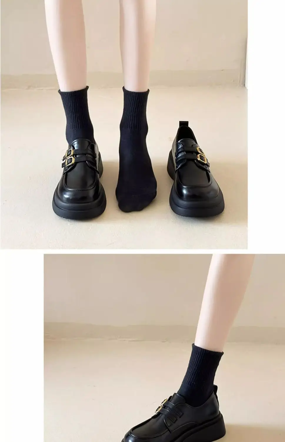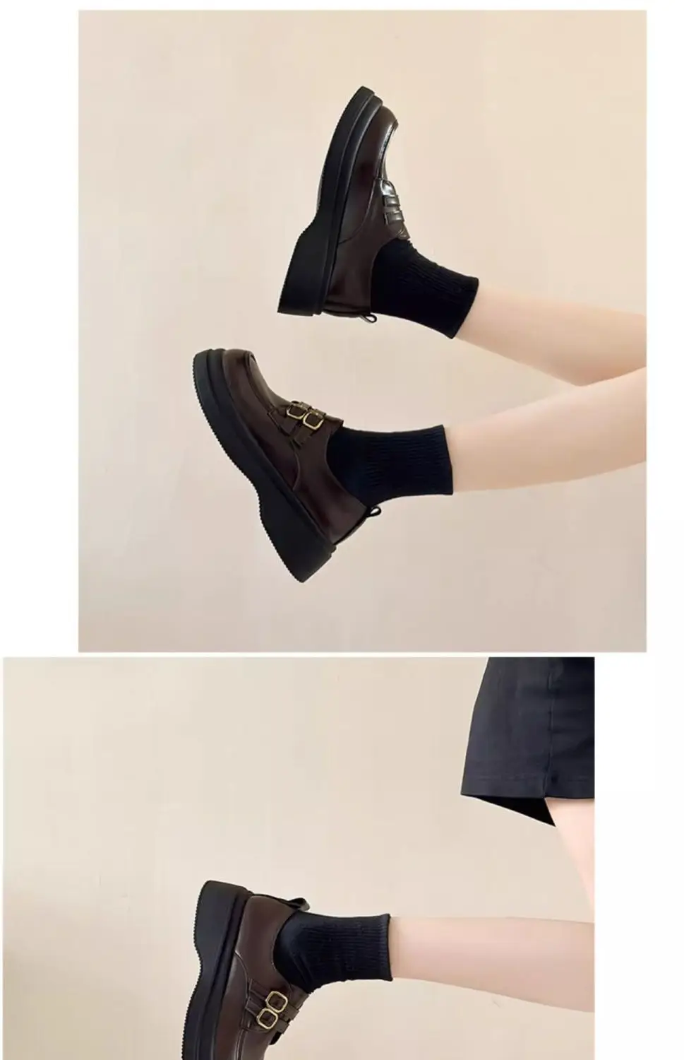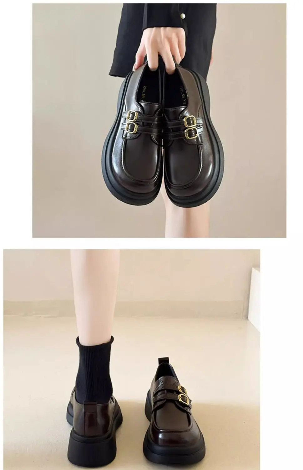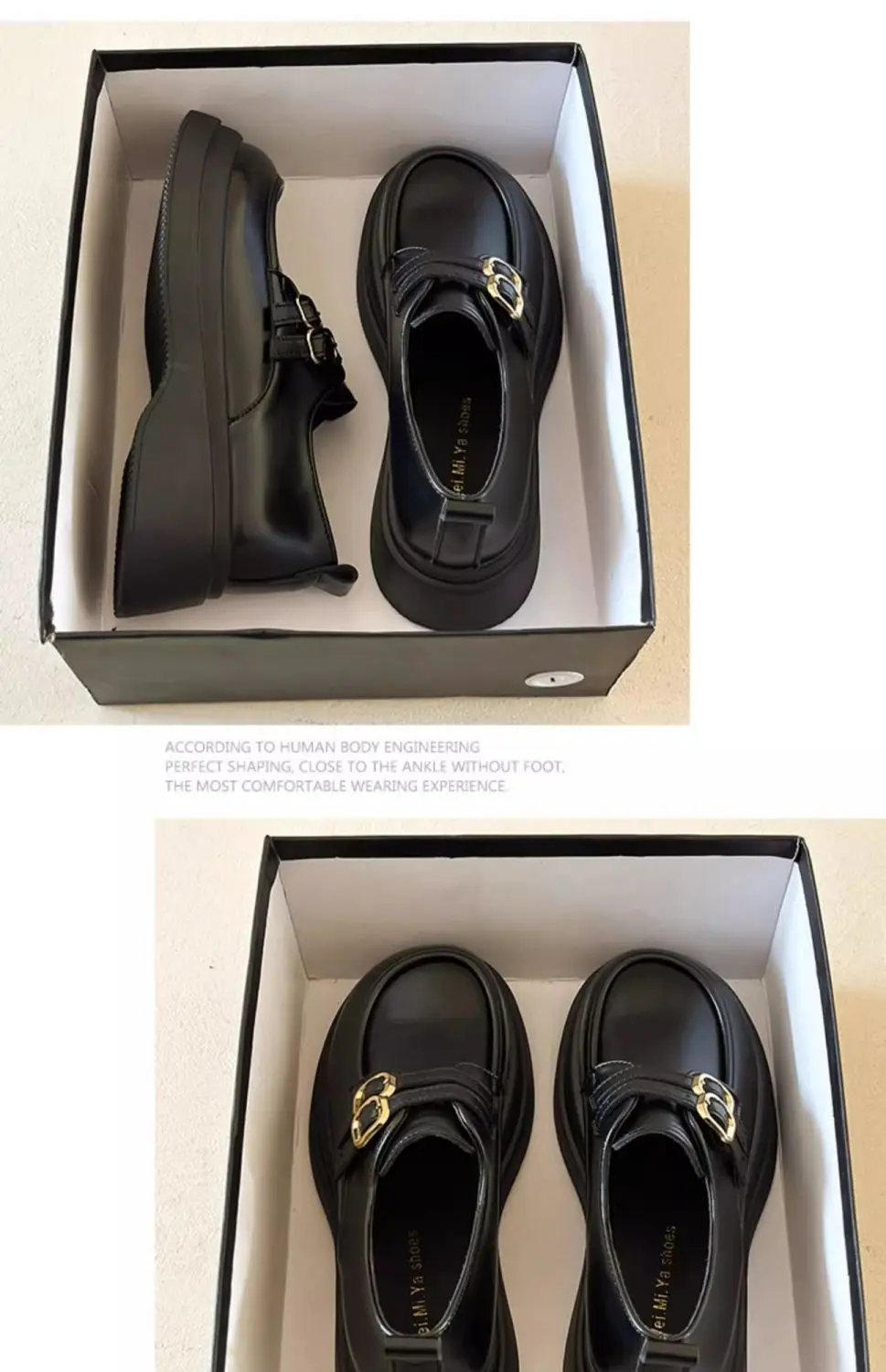 Classic Mary Jane platform shoes with a slip-on closure and thick heel for effortless style. The sturdy rubber sole delivers reliable grip and durability, while the closed-toe design offers practical everyday wear. Perfect for spring and autumn seasons, these British-inspired flats combine timeless elegance with modern comfort for the contemporary woman.