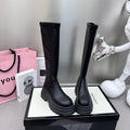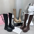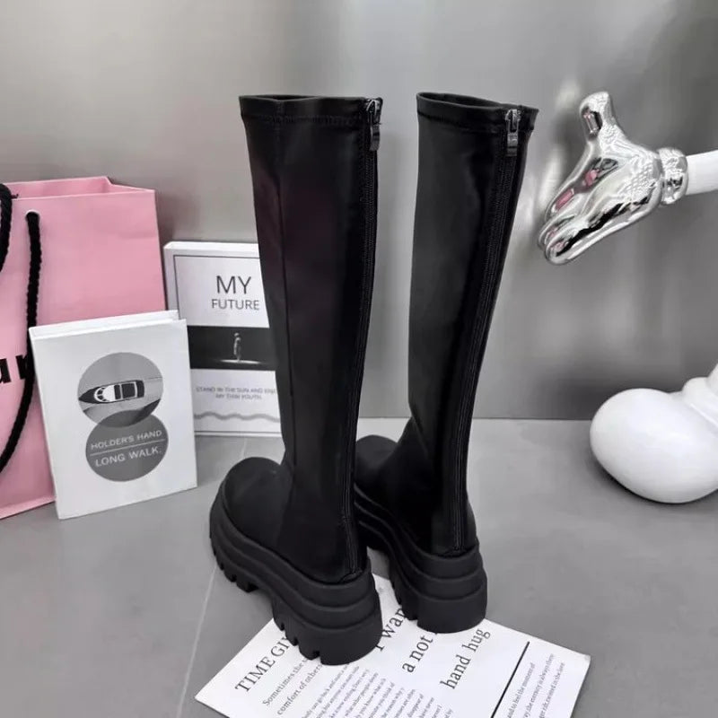 Versatile high-top boots with a durable rubber sole and thick heel for all-day comfort. Featuring a zipper closure for easy wear and a Korean-inspired design that transitions effortlessly from casual to formal looks. Durable rubber upper with PU insole for lasting support.