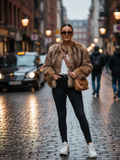 Wrap yourself in soft sophistication with this luxurious faux fur short coat, where vintage charm meets contemporary street style.