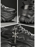 Women's chunky platform sneakers with lace-up closure and air mesh upper. True to size fit with high heel (5-8cm). Mesh lining and fabric insole for comfort. Ideal for spring and autumn wear.